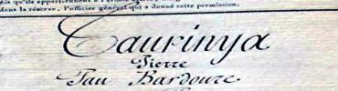 Acte de mariage - Taurinÿa Etiene, fils de Pau et Badia Margarida – 16 décembre 1810. Orthographe originale du nom