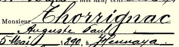 Casier judiciaire - Torignac Auguste, fils de Thorignac Pierre et de Vidal Rose  - 28 octobre 1890