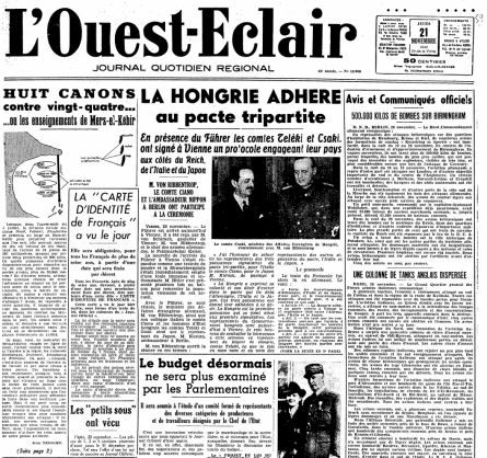 Nous rappelons que l'Allemagne et l'Italie n'ont pas demandé que la flotte française leur fût livrée. Elles ont simplement demandé sa démobilisation et son rassemblement dans des ports français, avec des équipages d'entretien français, sous commandement français, avec simplement contrôle des commissions d'armistice.
