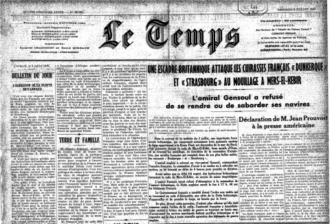 L'amiral de la flotte Darlan n'a pas égaré les lettres de remerciements de M. Churchill. Avant même l'expiration de l'ultimatum adressé à l'amiral Gensoul, l'amiral anglais faisait mouiller, par ses avions, des mines magnétiques dans le chenal d'accès à Mers-el- Kébir, faisant ainsi un acte caractérisé, d'hostilité.