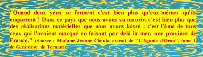 "Le peuple français d'Algérie était la fusion harmonieuse de toutes les régions de France et des autres pays de l'Europe méridionale mais tous étaient nés et avaient grandi sous le même drapeau, les mêmes lois, le même enseignement et le même attachement pour cette France lointaine qu'ils appelaient leur Mère-Patrie."